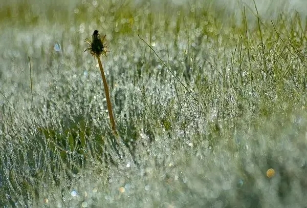 秋日晨,至園中,見草上,有露點(diǎn),如珍珠。